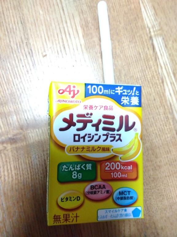 とても甘く、バナナの風味も作られた味なので、まぁ飲めなくはないですが美味しく飲めるとは言い難いのですが、100mlと少量なので、しっかりと栄養を補えるものだと感じました。