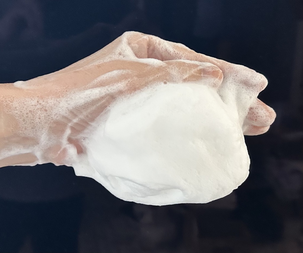 きめ細やかでもっちりとしたクッション泡がお肌をやさしく包み込み、不要なものだけを取り除き顔や身体をやさしく洗い上げます。