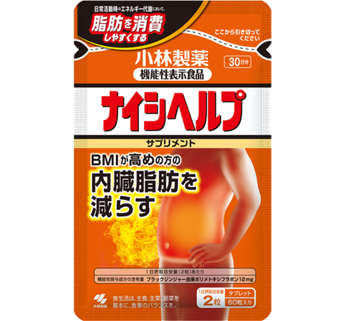 - 「ナイシヘルプ」はBMIが高め(BMI24以上30未満)の方の内臓脂肪対策サプリメント(機能性表示食品)です。