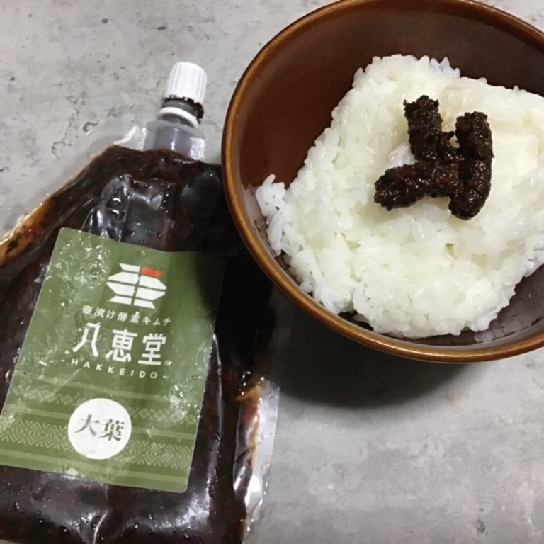 八恵堂のまかないで出てくるスープ。「八恵堂酵素キムチいか」「八恵堂酵素キムチたこ」を使用し、旨みと辛みが味わえます。