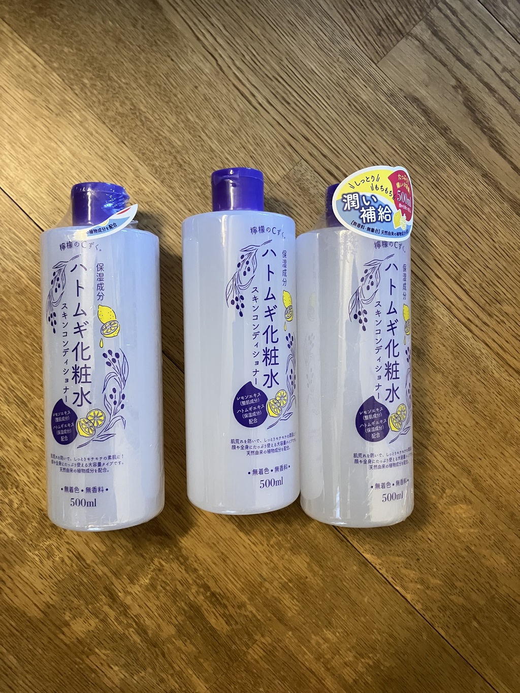 ハトムギ化粧水は可もなく不可もなく。安いからとにかくたくさんつけて干からびた畑に水をやるように躊躇なく使ってます!