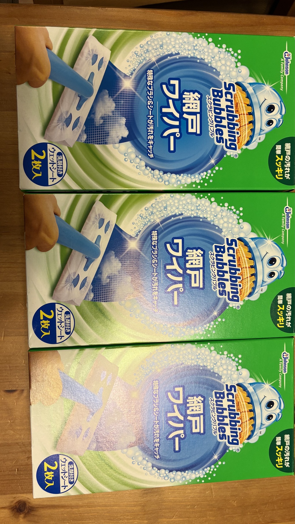 ジョンソン「スクラビングバブル網戸ワイパー本体セット ×3」をお試ししました。網戸の汚れをシートで拭くだけでかなり汚れが取れました。が、汚れがひどい部分はなかなか取れませんでした。