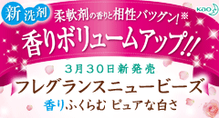 フレグランスニュービーズは、衣類をきれいに白く洗い上げるだけでなく、お洗濯の香りをボリュームアップする衣料用洗剤です。