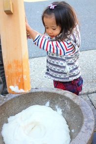毎年恒例だけど、娘はじめてのおもちつきに挑戦^^ はじめて御餅もたべました