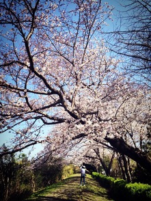 小さな頃から通っている近くの公園の土手の桜が見頃です♪ ちょうど前にいたカメラを持った男性が写ってしまいましたがなぜかいい味が出たので自慢の1枚です(*^^*)w