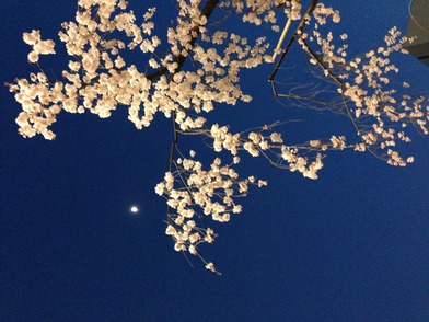 いい仲間といいお酒を飲みながらほろ酔いで撮った写真です(笑) 月夜に薄桃色が映えて綺麗でした!