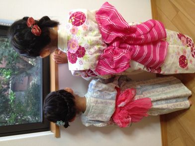 姉が着ていた浴衣を妹が着るようになり、姉も浴衣がようやく着こなせるようになり、姉妹の成長を感じた浴衣姿でした。