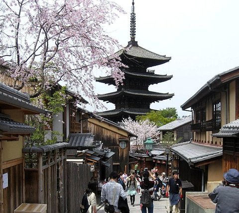 テレビの天気予報が「今日はお天気がいい」と言っているのを聞いた。それで決心! 重い腰を上げて「ひとりぼっち花見」に出かけた。東山界隈をうろうろして桜を堪能し、清水寺に近い八坂の塔にやって来た。まあ、何処へ行っても満員だ。しかし満員もまた楽しからずや〜そしてぼっち花見も悪くない! 帰って…寝た。