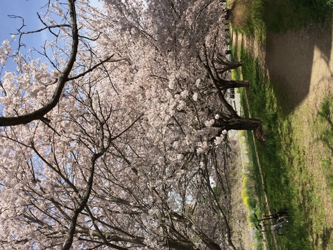 お天気もよく、川沿いにずっと続く桜並木がとても綺麗でした。春満開です。