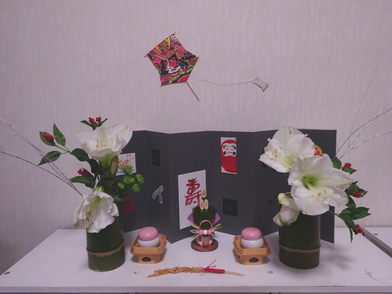 毎年お正月にフラワーアレンジメントをしています。今年は、白いアマリリスに一目ぼれして、竹筒に飾ってみました。