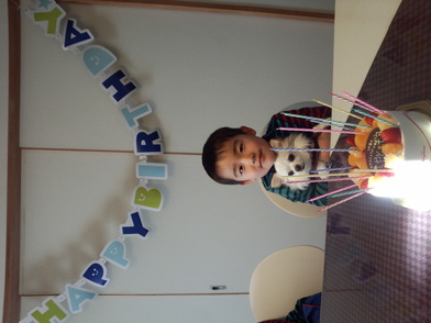 我が家の息子&ワンちゃんは年始生まれ♪お正月の気分冷めやらぬうちに、バースデーケーキで一気に洋風モードです(笑) 息子5歳、犬10歳でロウソクだらけのケーキ★
