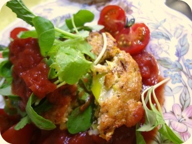 手作りハンバーグにカゴメのトマトを使って、トマトハンバーグにしてみました。 ベランダで育てている無農薬野菜も添えて、ヘルシーごはんです♪