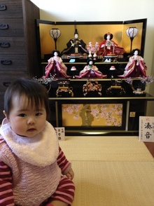 小さく小さく生まれたけれど 風邪ひとつひく事無く 元気に元気に迎えた初めての桃の節句 ちょっと得意げ(?)なうちのお姫様です
