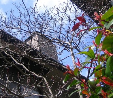 見上げると、眩しいばかりの陽の光〜 まだ寒いけれど、春はそこまで・・・。 ハナミズキの枝にも、やがて青葉が・・・・