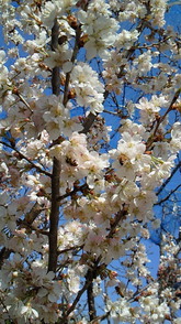 満開の桜にミツバチ達がすごい羽音をたてて密を集めに群がっていました。