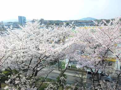 引っ越してきた時は、2階ほどしか 背丈がなかった桜の木も20年たつと 5階へ届くほどに成長。 4階の我が家の窓は春になるとピンク色に 染まります。