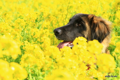 飼い主さんと来ていたワンコも菜の花の花粉だらけに なりながらも春の日差しを浴びとても喜んでいました。 とてもほほえましい光景でした。