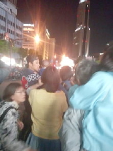 旦那と子供、義母と初めて浜松まつりにいってきました。 山車が豪華で驚きました。 左端が義母、子供をおんぶしてるのが旦那です。